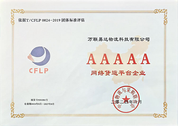 近日,中國物流與采購聯合會公布第九批網絡貨運平臺A級企業名單,這是繼2023年1月獲評“3A級網絡貨運平臺企業”后,短短一年半的時間,萬聯易達又獲評“5A級網絡貨運平臺企業”。