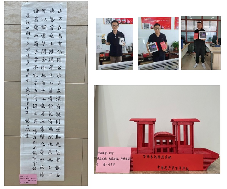 為隆重慶祝中國共產黨建黨100周年,引導全體員工知黨愛黨,引領廣大青年員工不忘初心,牢記使命敢擔當,發現和培養員工的藝術才能,為企業發展貢獻力量。“七一”前,萬聯易達吉林公司內部開展征文、書法、繪畫、手工的比賽。截止6.15號收到參賽作品11件,采取內部投票的方式,評選出卓越獎1名,杰出獎2名,非凡獎8名,并且為參賽者訂制了吉林萬聯易達專屬獎杯和證書。各位參賽選手多角度抒發對家國和企業的深切情懷。營造了慶祝百年的濃厚氛圍,充分展示了萬聯易達員工的良好精神風貌。